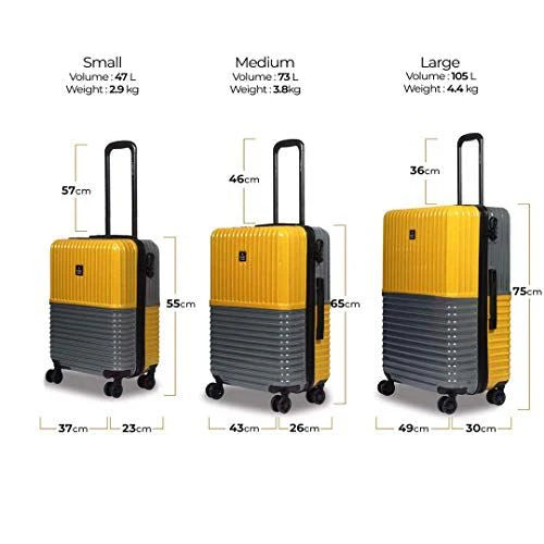 Check-In Large (L): This 28-inch lightweight, hard-sided check-in trolley bag is perfect for weekend trips or traveling abroad. Ideal for travels lasting than a week. Suitcase can hold weight up to 20 Kg.