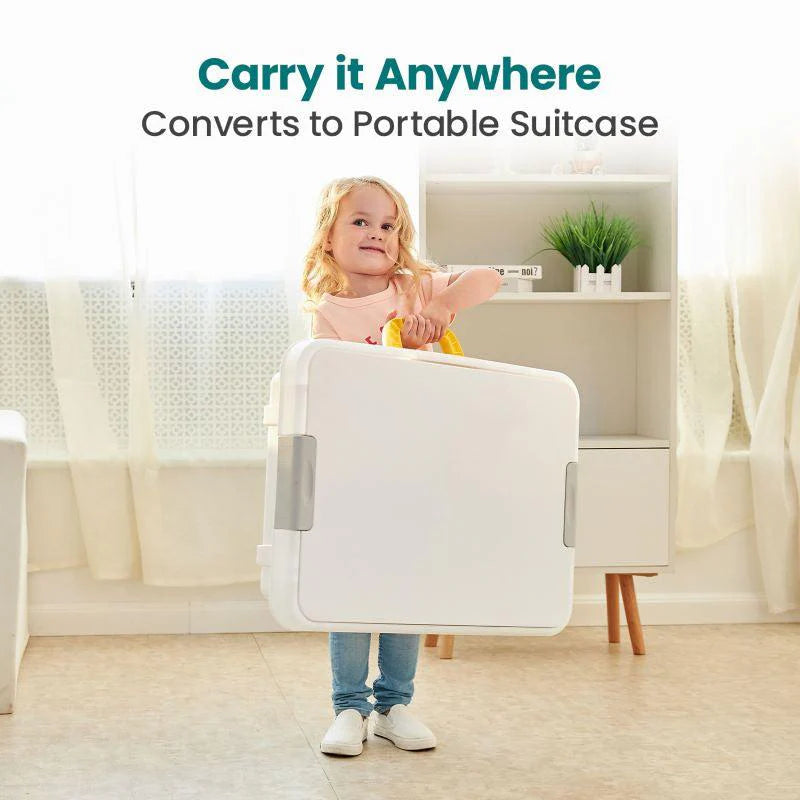 Say hello to "Little Genius Learner", Kids Study Table Set with Chair. It's smart, safe, and practical. Little Genius learner is here to spark your child's creativity and imagination. Installing it is as simple as 1-2-3. This table and chair set turns studying into an exciting journey of discovery. It makes learning effortless and fun for your little one. Be it engaging study time, artistic sketching, stimulating building blocks, or enjoyable eating time, Little Genius Learner sets the stage for every enlightening and playful experience for your little one.